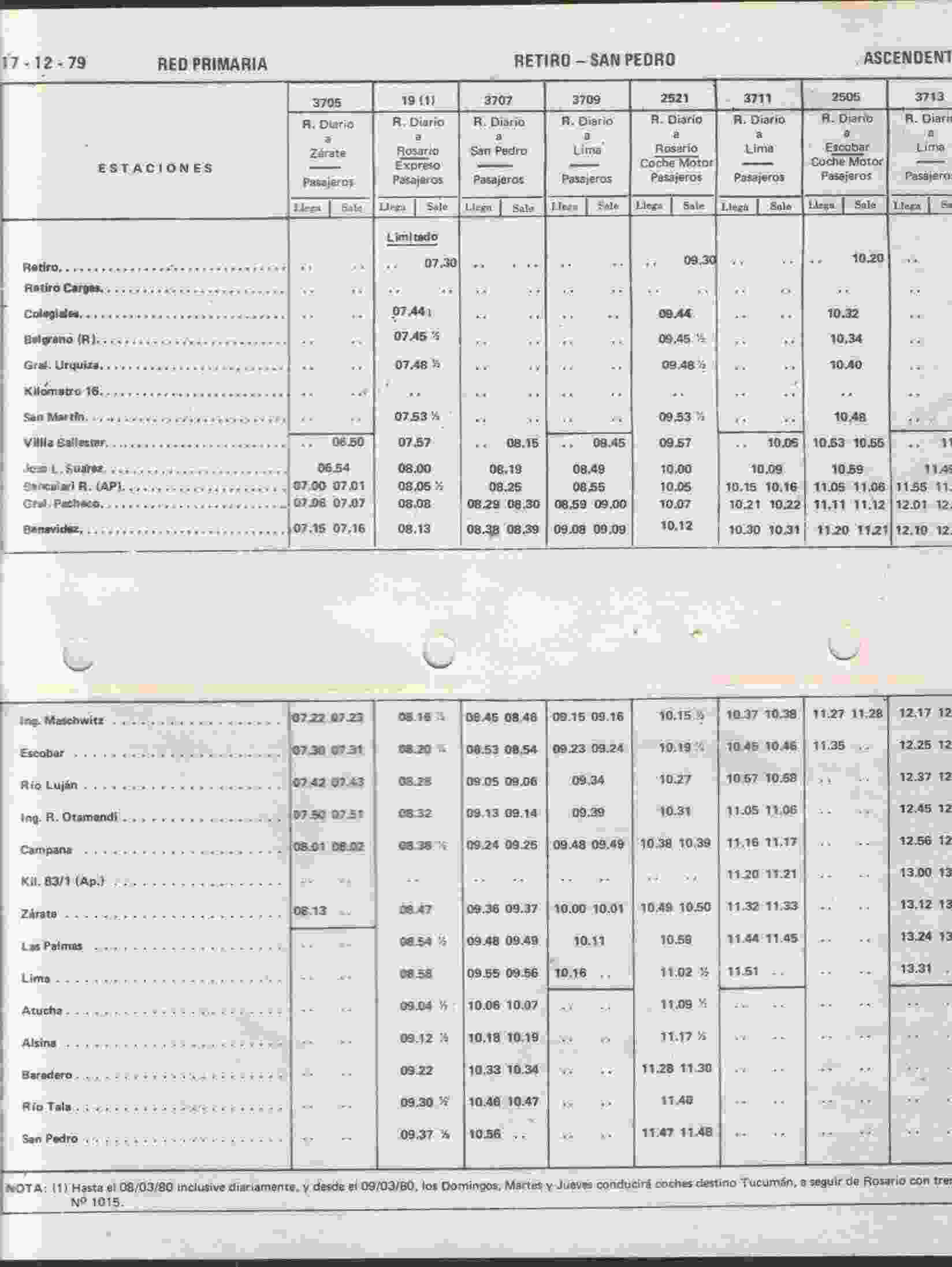 Aquí te envío, del itinerario de 1979 del Mitre, el horario del Coche Motor