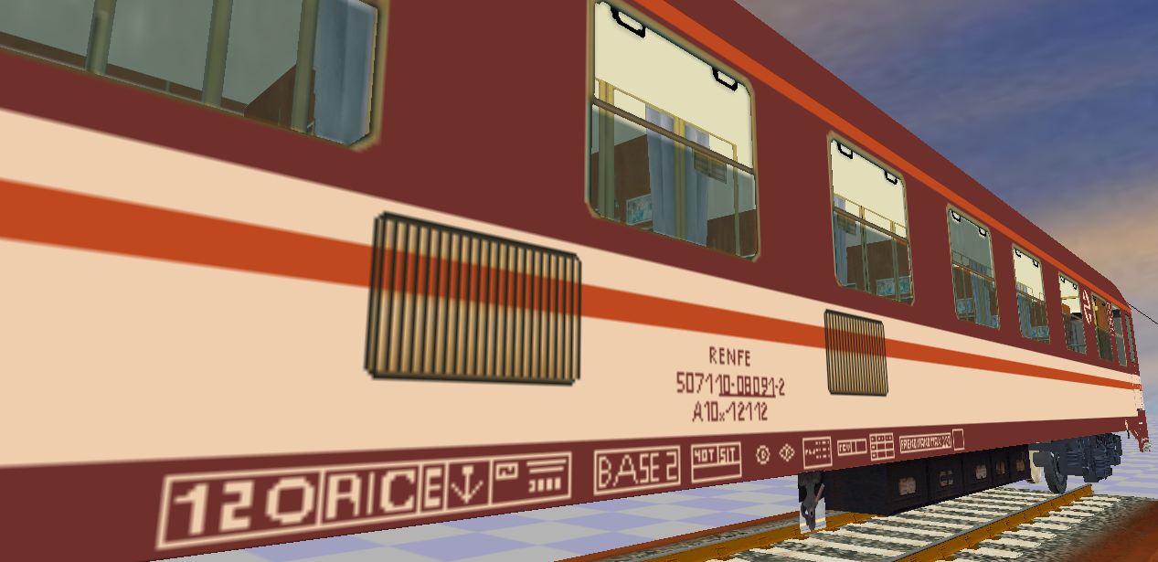 Desde luego se echaba en falta la librea estrella en el MSTS (aunque por ahí andan muy dignamente los coche cama, magníficamente diseñados también).