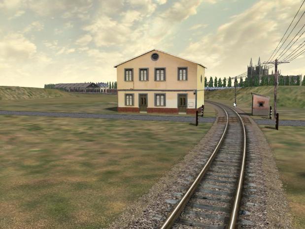 Pues sí viniendo por Soria, de cualquiera de esos tres sitios u otros más, ya al poco de salir de Cardeñadijo, aparecen los chapiteles de las torres de la catedral sobresaliendo por lo alto de las alamedas del Arlanzón, poco después se ve una casilla de paso a nivel única del Santander-Mediterráneo, que más bien parece una casa de vecinos, y, ya detrás, la marquesina de la estación de Burgos-Avenida (1). Burgos-San Zoles, nuestra estación está todavía escondida a la izquierda al finalizar la curva.