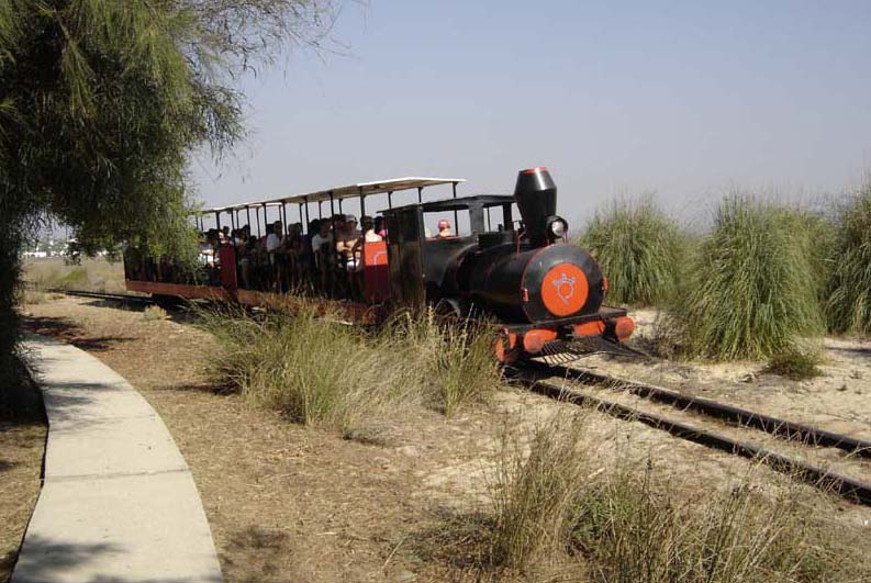 Lo ferrocarril de Pedras d'El Rey (aldeamento turistico) a Barril (playa) es plano con un ancho de 2 piés (60 cm).