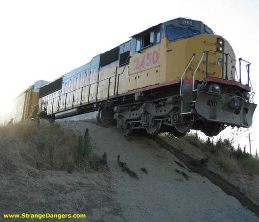curiosa imagen que he encontrado buceando por la red, de una locomotora de Union Pacific, creo que es una GM EMD SD-75I, el susto que se daría el maquinista al ver que la "mole" se iba a hacer motocross. :?