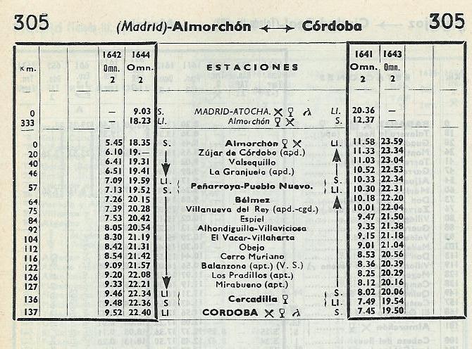 Me extraña también ese horario que has puesto. A la fecha que indica (1998) ya estaba clausurada gran parte de la línea. Desconozco si llegaban trenes hasta el Muriano por aquellas fechas (pero seguramente NO), quedando el tráfico reducido hasta la Térmica de Puente Nuevo. En Cerro Muriano empezaba un descenso en 14 km de unos 300 m (desde la sierra hasta el valle). El enlace con Córdoba quedó cortado con la contrucción en 1994 de la nueva estación de Córdoba.