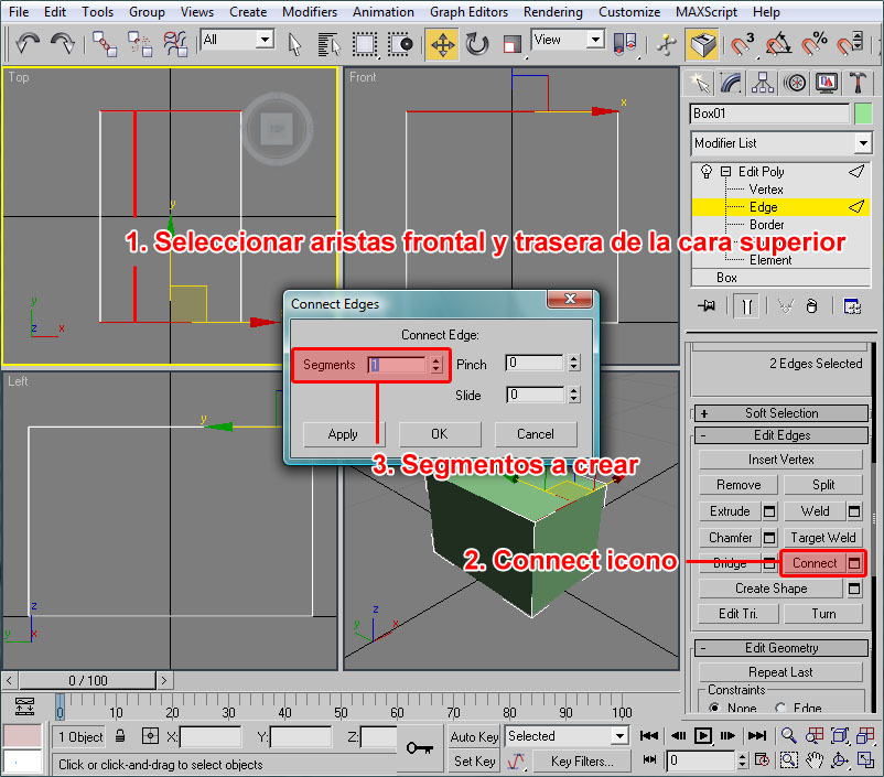 Si una vez ejecutado uno de estos procedimientos en el modelo no se aprecia ningún cambio, será seguramente porque el botón "Show Map in Viewport" no está pulsado. Pues lo pulsamos y ya nos debe aparecer la casilla correctamente texturada, por lo que podemos cerrar la ventana del "Material Editor" y apreciar la casilla en el editor 3D: