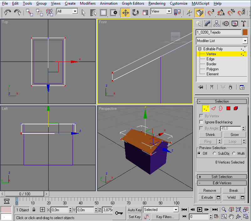 A destacar también que si hacemos clic con el botón izquierdo del ratón sobre el nombre del viewport, este pasa a ser el viewport activo sin perderse la selección del objeto actual. Esto es importante para poder editar un objeto de forma continuada en todos los viewports, como veremos más adelante.
