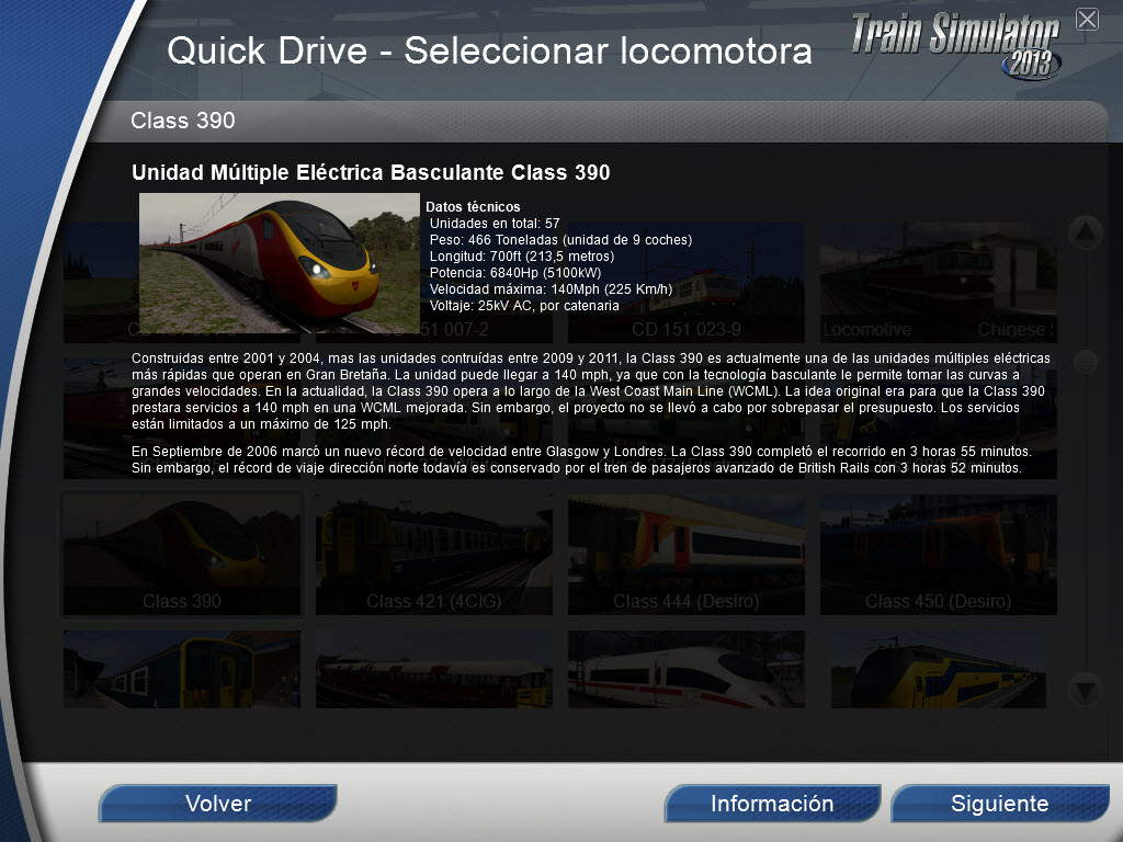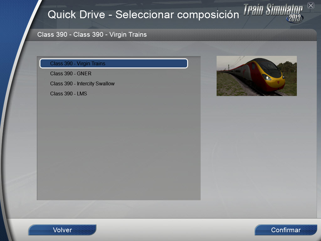 Hola, he creado una composición Quick Drive para la EMU Class 390 en librea Virgin Trains, ya que todavía carecía de ella. Asi mismo también he traducido su información.