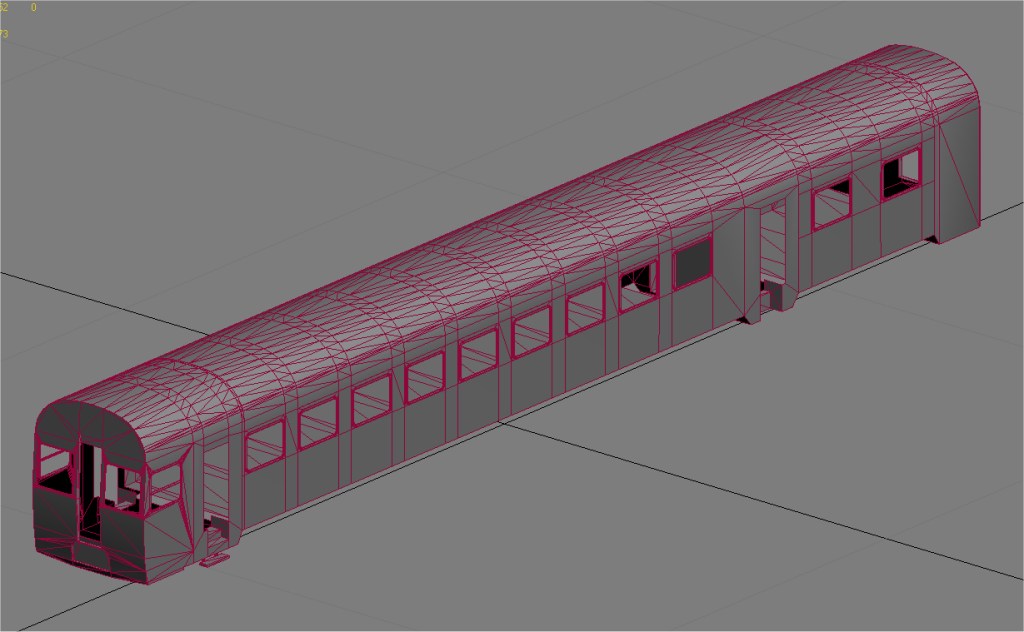 Traspasar una malla de MSTS a RW no es buena idea si esta es muy compleja ya que queda bastante regular y hay que arreglar mucho, al final es mejor hacerla desde el principio, se hace en menos tiempo que arreglándola, además queda mucho mejor y con menos polígonos. Aunque esto último como que da un poco igual, el simulador traga con todo, da igual que hagas una malla de 50.000 polígonos que una de 200.000 lo mucho que vas a perder son dos o tres fotogramas además con los LODs aún menos problema y con las texturas exactamente igual y ahora mejor con el formato DDS, con las de 2048x2048 en ordenadores de más de cuatro años dan problemas de rendimiento pero si se ponen muchas, con dos o tres para un modelo tan grande como es un vagón no hay problemas.