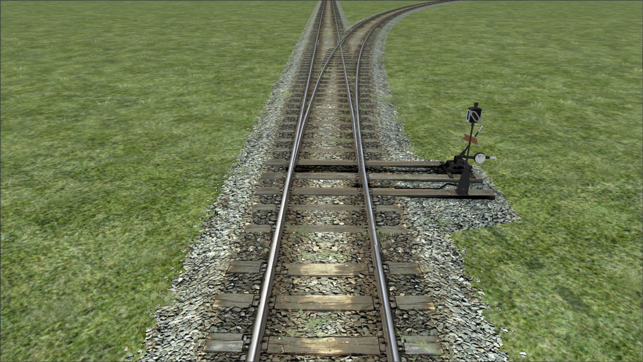 6. Podremos dar por finalizada la creación de la aguja y comprobar su funcionamiento en el simulador. Si hemos seguido correctamente estos pasos, comprobaremos que en posición desviada la señal indicadora de posición de la aguja apunta su flecha hacia la dirección de la vía desviada.