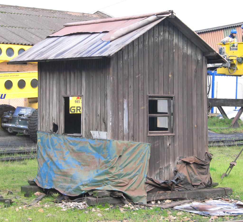Esas garitas de pasos a nivel fueron unas unificadas, había varios modelos, que se crearon en las carpinterias de Explotaciones Forestales a mediados-finales de los 70. Hace unos días ví unas en Almohaja y en Caparrates, pero no las fotografié, de todas formas están afectadas por el paso del tiempo y afortunadamente no por el vandalismo, dado que por allí sólo se acercan las bestias y éstas son más humanas.