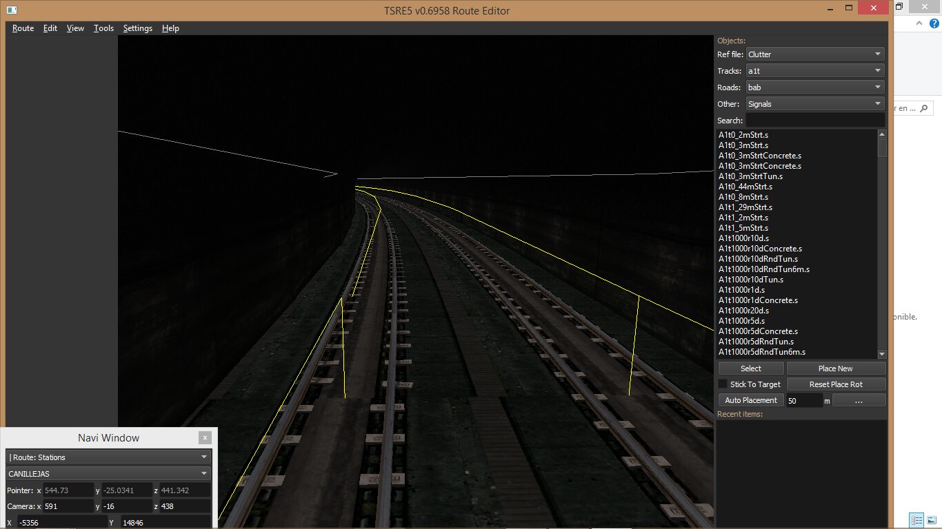 Es frecuente que cuando se ponga una vía y se quite para volverla a ajustar, el TSRE5 guarda en el TDB la posición anterior, por eso es conveniente al reponer una vía, aunque sea otra más conveniente, fijarse bien y desactivar la inmediata anterior mediante pulsarla y Z para que su TDB se borre, luego pulsar en cualquier parte o la misma vía para reactiva el TDB y acto seguido colocar la anterior.
