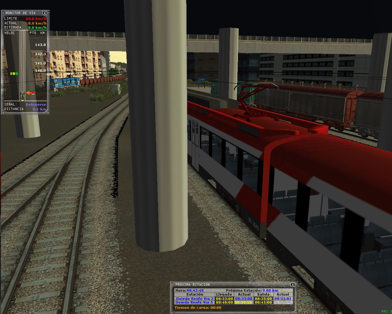 Hola, Actividad conseguida en 1h 35', sin ningún problema de gráficos ni de otro tipo. Los horarios se pueden cumplir fácilmente y hay buen tráfico con cruces y rebases a trenes de FEVE que circulan por sus vías. :D :D :D