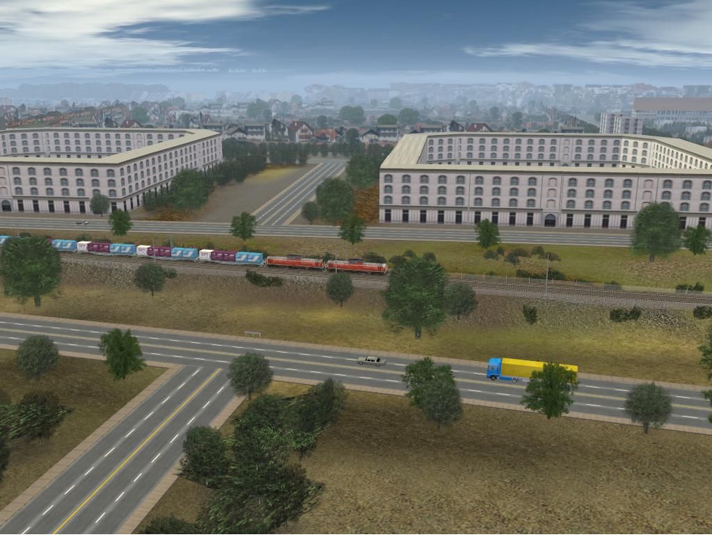 tremendas mejoras en cuanto a profundidad; asi que se recomienda poner la distancia de representación al máximo. los backdrops externos de casas dan la idea de enormes poblaciones sin quitar mucho rendimiento, por lo menos a mi se me mueve muy fluido. Le puse cerros y montañas por los bordes para ocultar el desagradable efecto de precipicio donde termina cada bloque del terreno. Por esto es muy bella tanto en vista de conductor como vista externa. Pinte algunos cerros con colores celestes que le dan apariencia de estar lejanos. Ademas en las estaciones hay personas moviéndose los cuales bajé de una página rusa por ahi. En definitiva una ruta de más de 300 kms. con muchos detalles y sin demasiadas dependencias externas asi que no tendrian problema para instalarla en cualquier trainz 2006 incluso la instalé en trainz 2009 sin errores. Espero comentarios. Pronto la subiré.... :wink:
