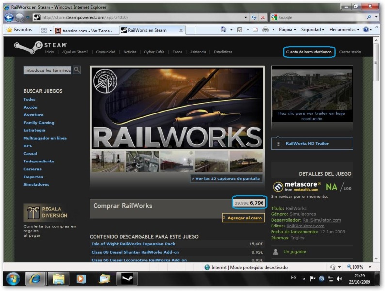 Hoy el precio de RailWorks, según Steam, es de 6,79 €, al menos así sale en Steam, parece que sólo hasta el 31 de octubre