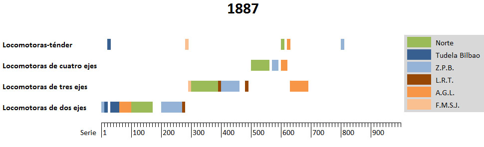 Por todo ello, entre 1880 y 1883, y aprovechando los primeros desguaces de locomotoras(1), la compañía se planteó rematricular todas las locomotoras absorbidas del Z.P.B., dejando la franja 1-99 para las locomotoras de Tudela Bilbao, todas ellas de dos ruedas motrices (algunas de ellas locomotoras-ténder).