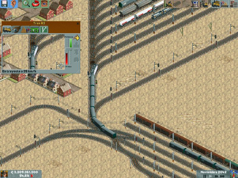 Os explico, me he creado un mapa totalmente llano, con muchas industrias. Para ver hasta donde podría llegar y a cuantos trenes podría hacer jaja. Lo empece en el año 1995 justo, con ciudades pequeñas apenas de 500 habitantes. Ahorra llevan algunas mas de 60.000 habitantes, y lógicamente las estoy encerrando para que no crezcan porque madre mía. Llevo unos 130 trenes, 14 aviones y unos 20 tranvías.