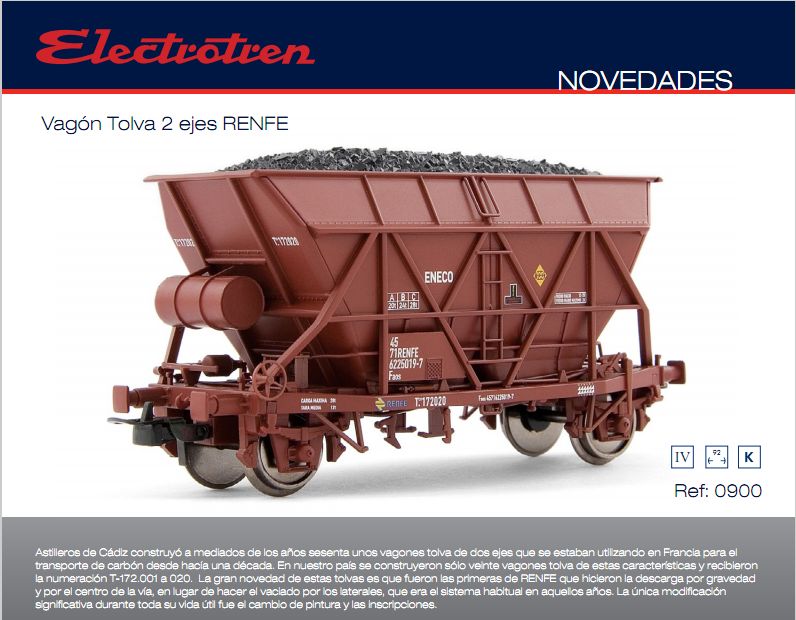 Estas tolvas de 2 ejes pronto estará disponible en mi websitio (enlace "Matériels","Europe"). Me siento inspirada por el HO modelo Electrotren (corregido longitud). Pero no he encontrado información acerca de los coches de verdad (año de uso, fabricante...). Gracias a los que me podía dar.