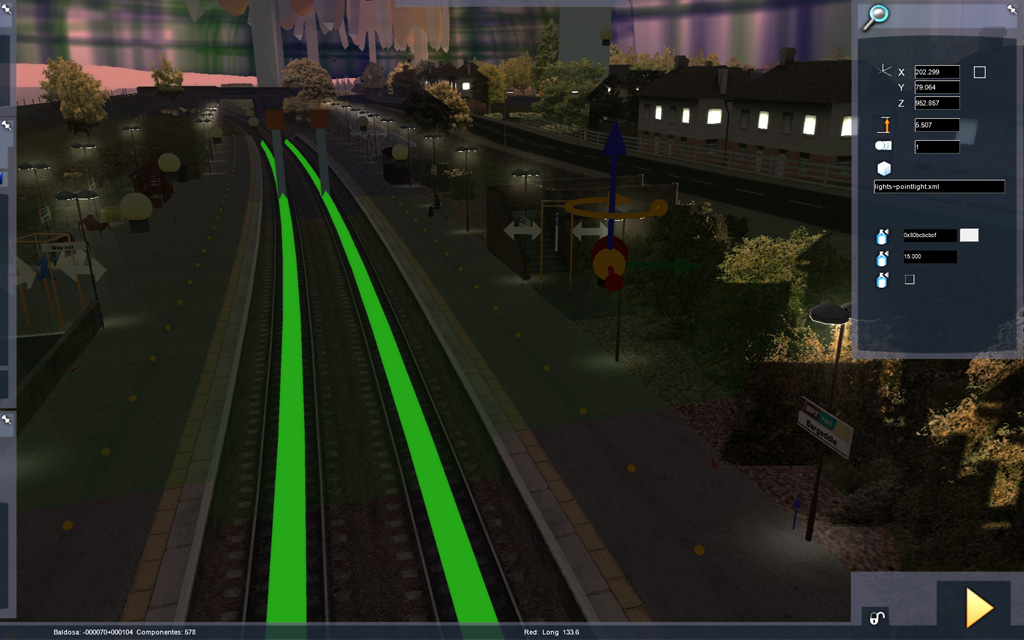 Ahora en vez de alumbrar las estaciones con el '100mDiffuseSpot' alumbramos con el '100mDiffuseSpotDay' y la luz permanecera alumbrando tanto de día como de noche...