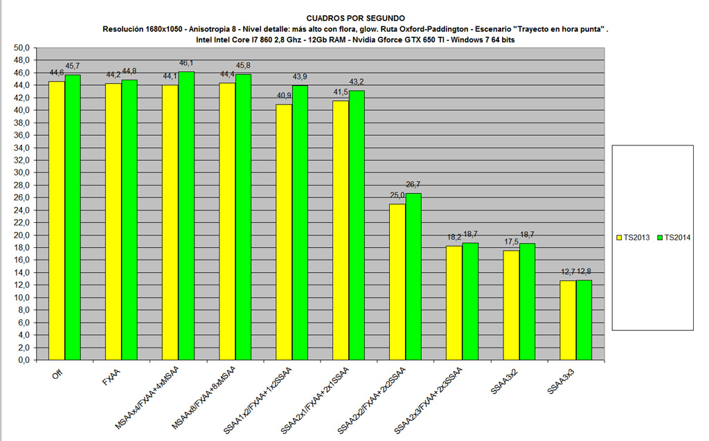 Quizá en las rutas ya adaptadas a TS2014, Londres, Donner Pass y Hannover se pueda apreciar esa diferencia en fps respecto a TS2013, ya que en teoría todo debería estar exportado con los nuevos plugins.
