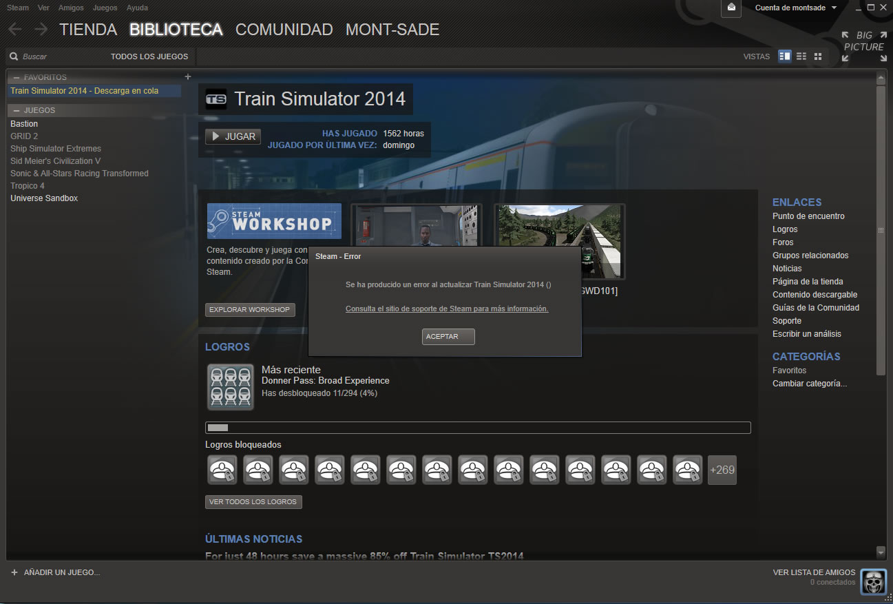 Saludos, mi problema es que decidí reinstalar todo el juego (train simulator 2014) nuevamente en mi pc , pero la descarga se detiene cuando va al 20% en total serian 12 gigas. y me saca este aviso que anexe como imagen.