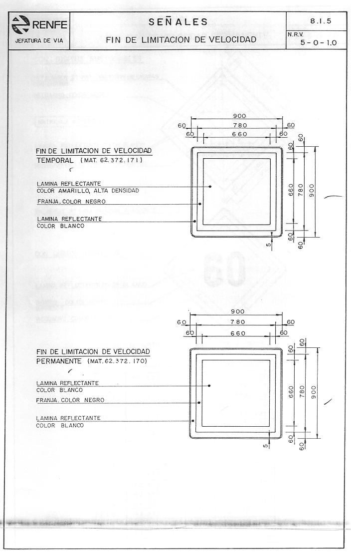 También aquí el cambio se produce en las señales de limitación de velocidad que establecen dos o tres límites diferentes. Ahora tendríamos 1-2-3 rombos superpuestos (recordar que los cuadrados puestos de vértices los conocemos como rombos). A lo mejor, es un localismo, y en otras partes ferroviarias de España se conocen de otra forma.